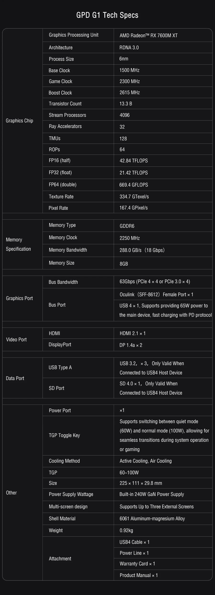 2025 Latest GPD G1 Graphics Card Expansion Dock USB 3.2 Type A SD 4.0 HDMI Compatible SD 4.0 Card Reader DisplayPort 1.4a