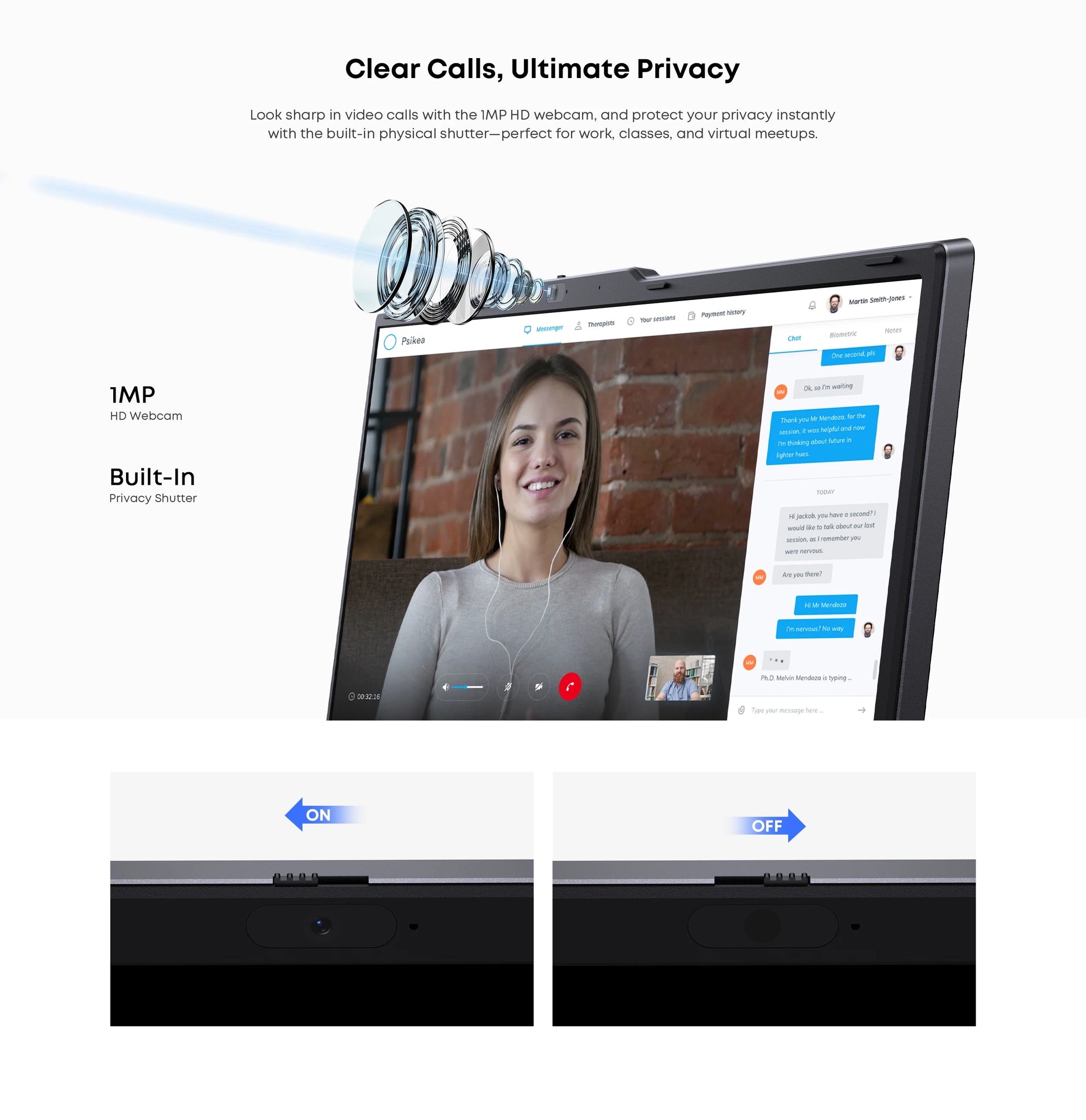 Look sharp in video calls with the lMP HD webcam, and protect your privacy instantlywith the built-in physical shutter-perfect for work, classes, and virtual meetups.