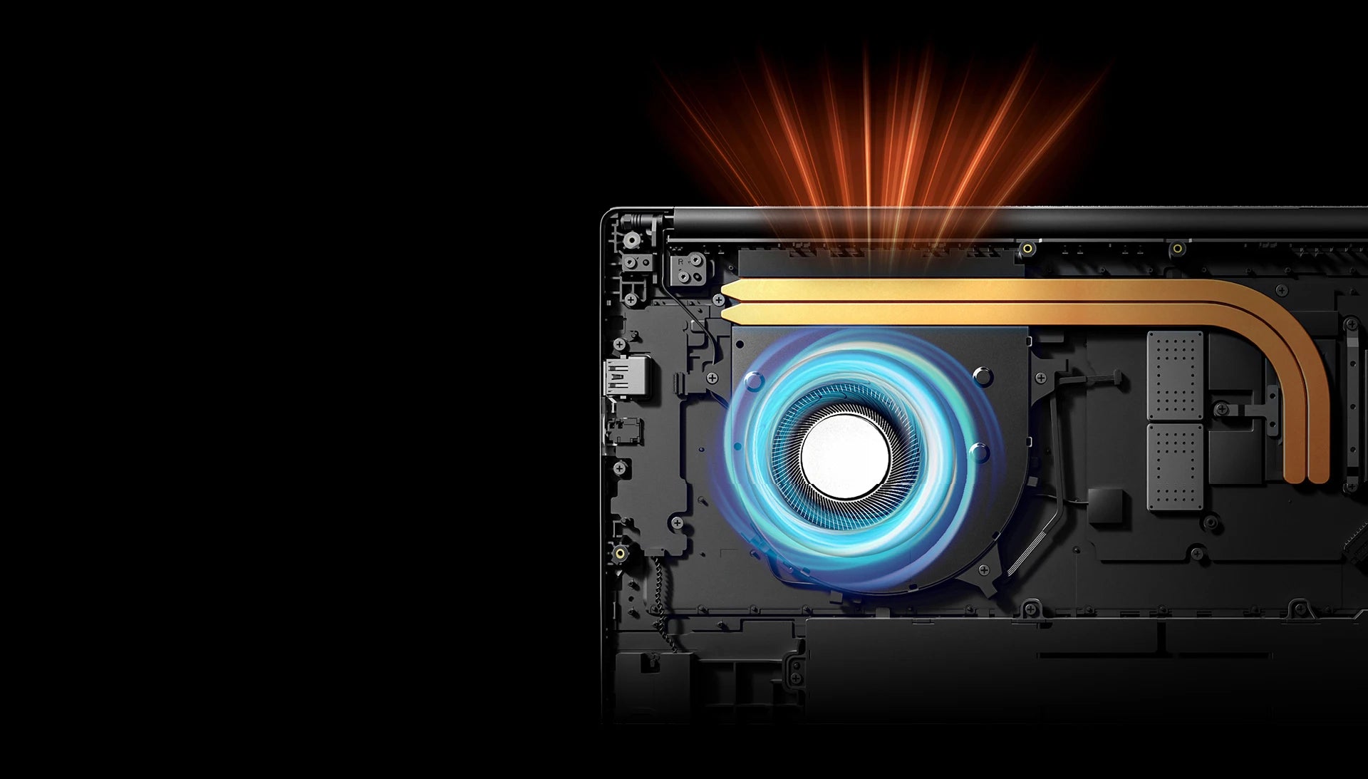 Featuring a high-density S-shaped thin fan blade design combined with large-diameter dual copper heat pipes, significantly enhancing the overall cooling capacity and efficiency of the laptop.