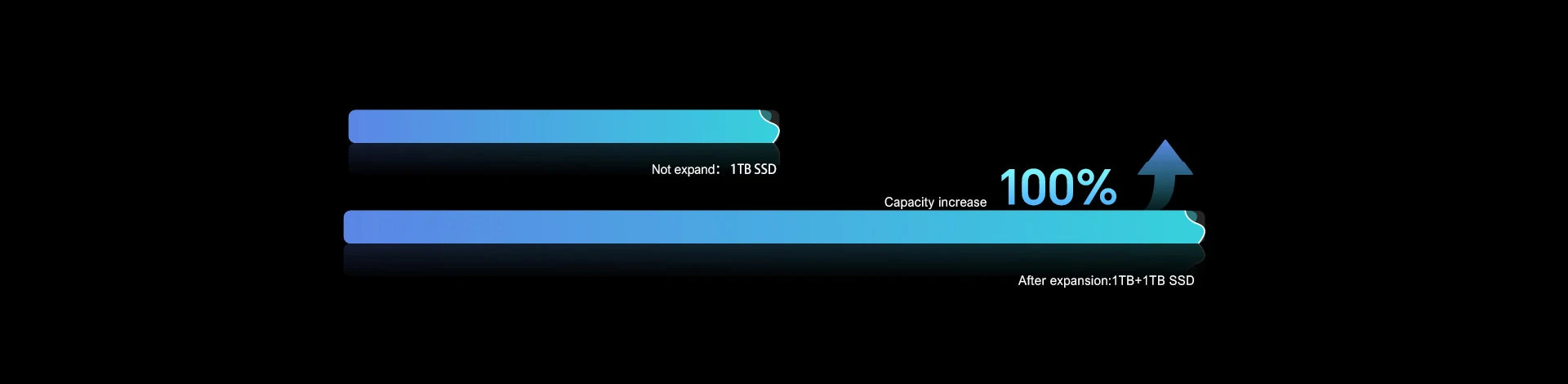RAM 16GB, Up to 1TB Solid State Drive, Dual Drive Slots, Supports 1TB+1TB Solid State Drive Expansion.