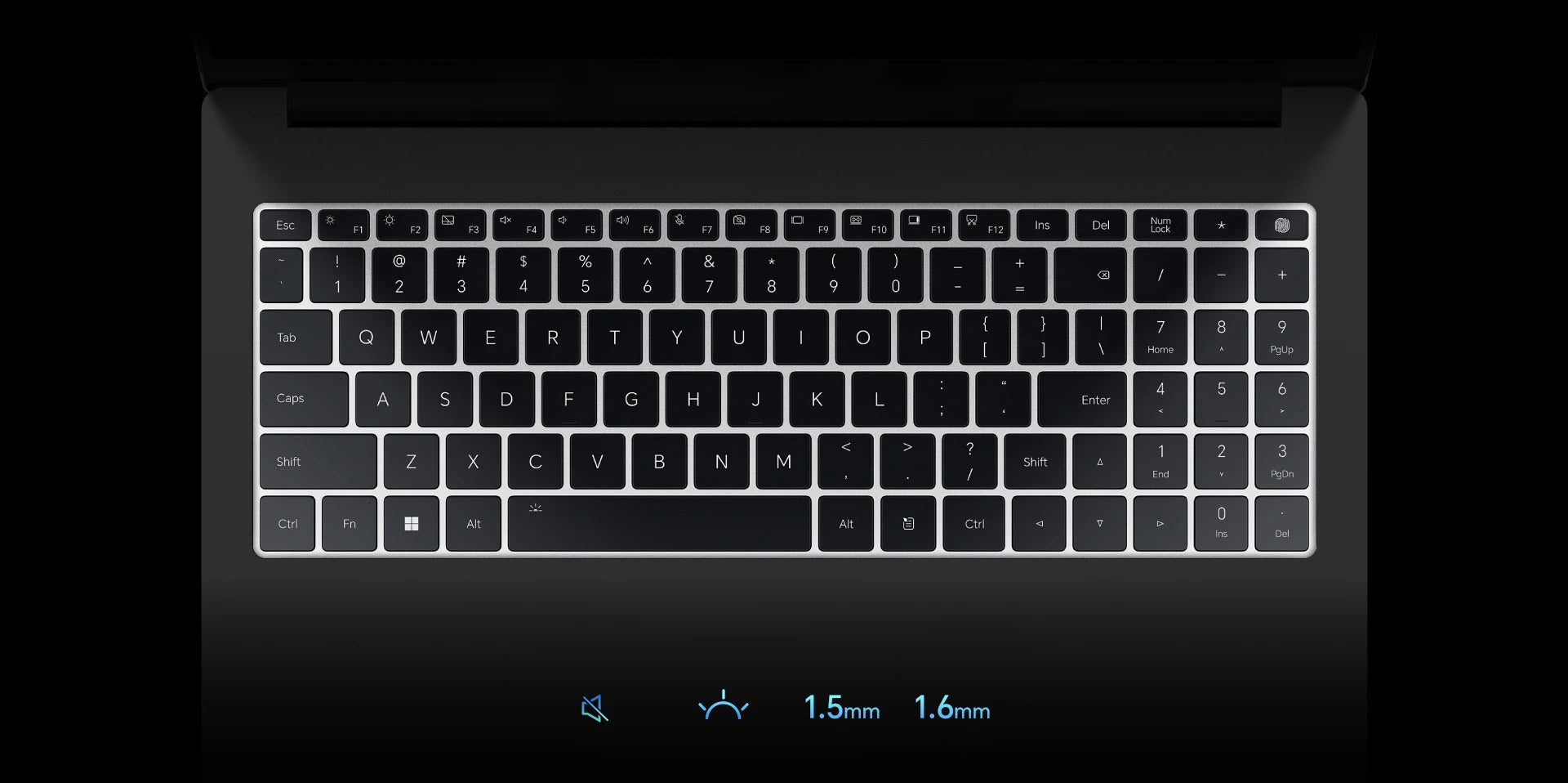 1.5mm long key travel, three-level backlight adjustment, and slightly concave keycap design for fingertip comfort and strong tactile feedback.