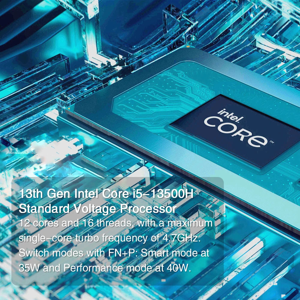 2. 13th Gen Intel Core standard voltage processor with seamless performance mode switching. Intelligent mode at 35W and high-performance mode at 45W.