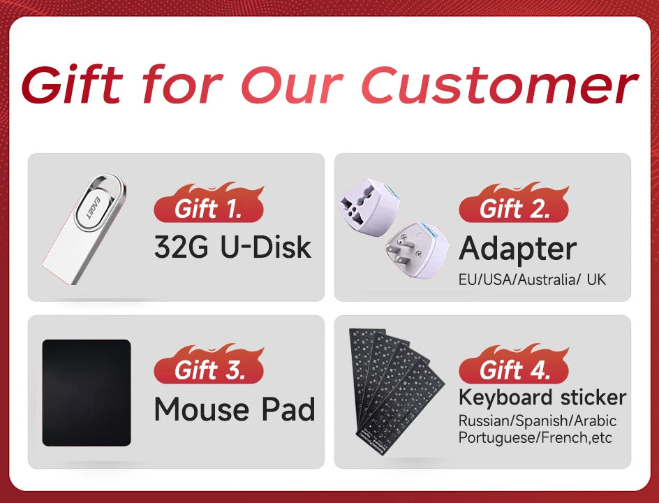 All laptops are English keyboards, we provide keyboard stickers in different languages for free, please leave a message to inform the sticker language.